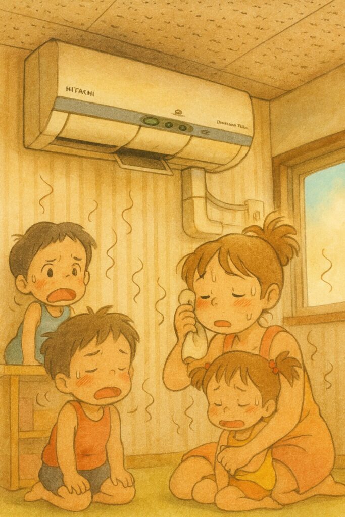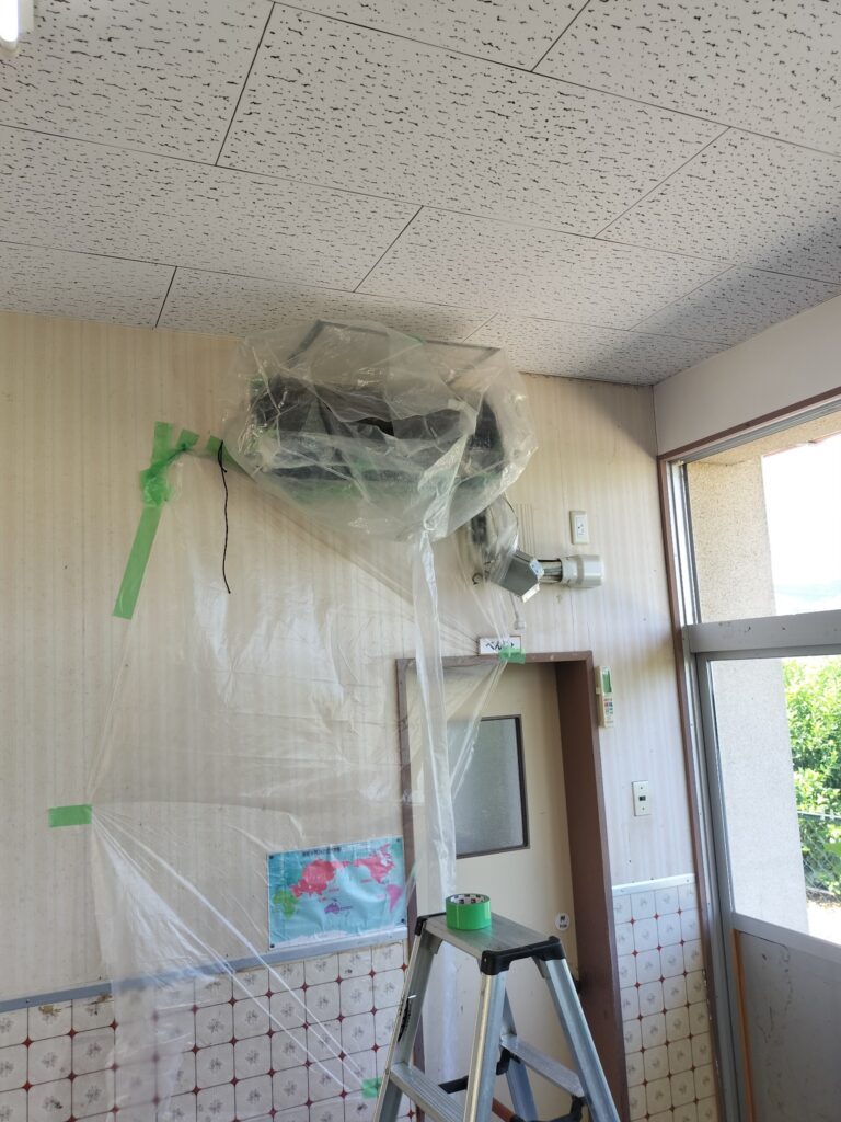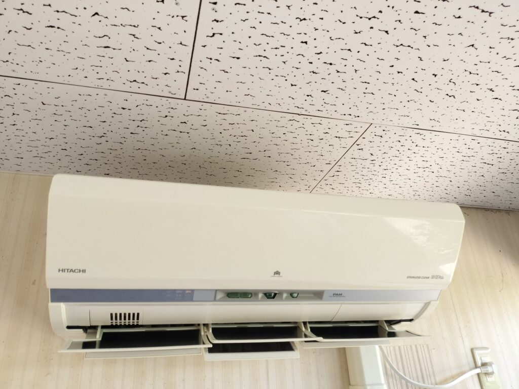 そんな中、「エアコンの効きが悪いんです…」とご相談をいただき、さらに付けたときにかび臭い匂いもするとのことで、島内の保育園さんに伺ってきました。🏃💨