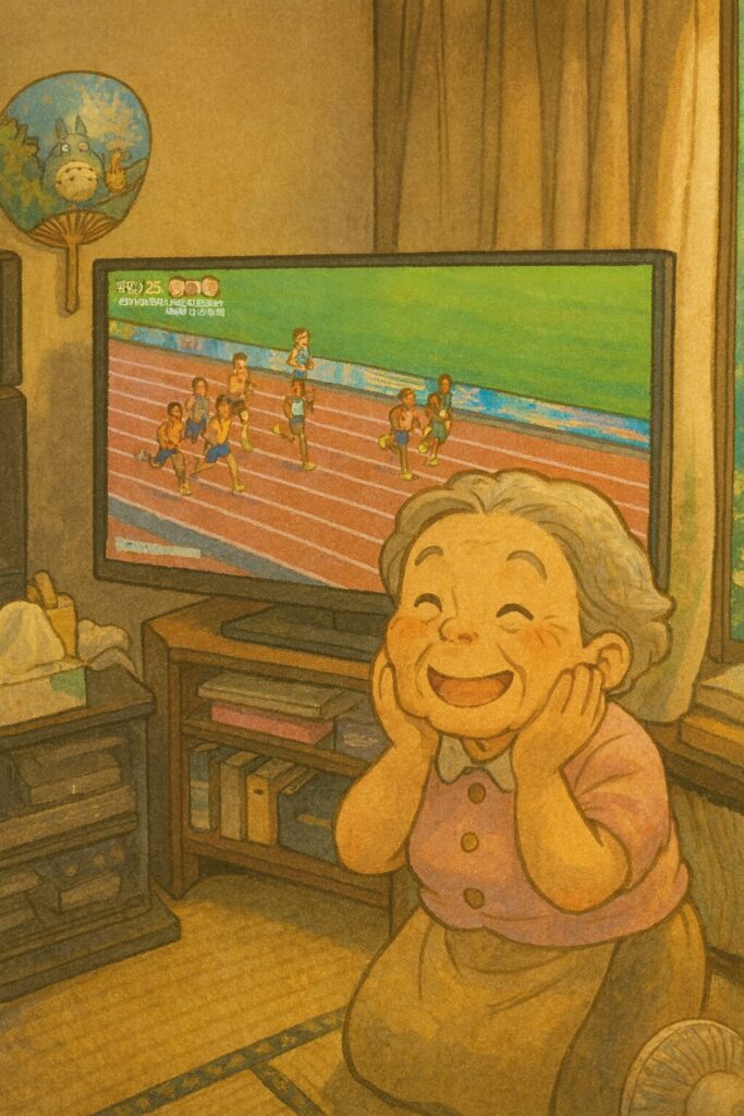 字幕や選手のゼッケンもクッキリで、「これなら目が疲れにくいね」とおばあちゃんもニッコリ😊