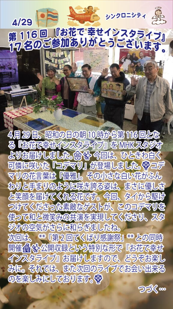 - 第94回 『お花で幸せ インスタグラムライブFlowers and Happiness Instagram Live』2024年 4月21日