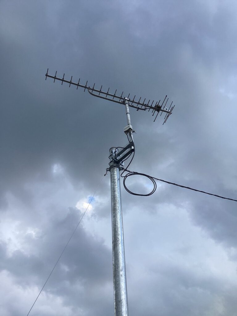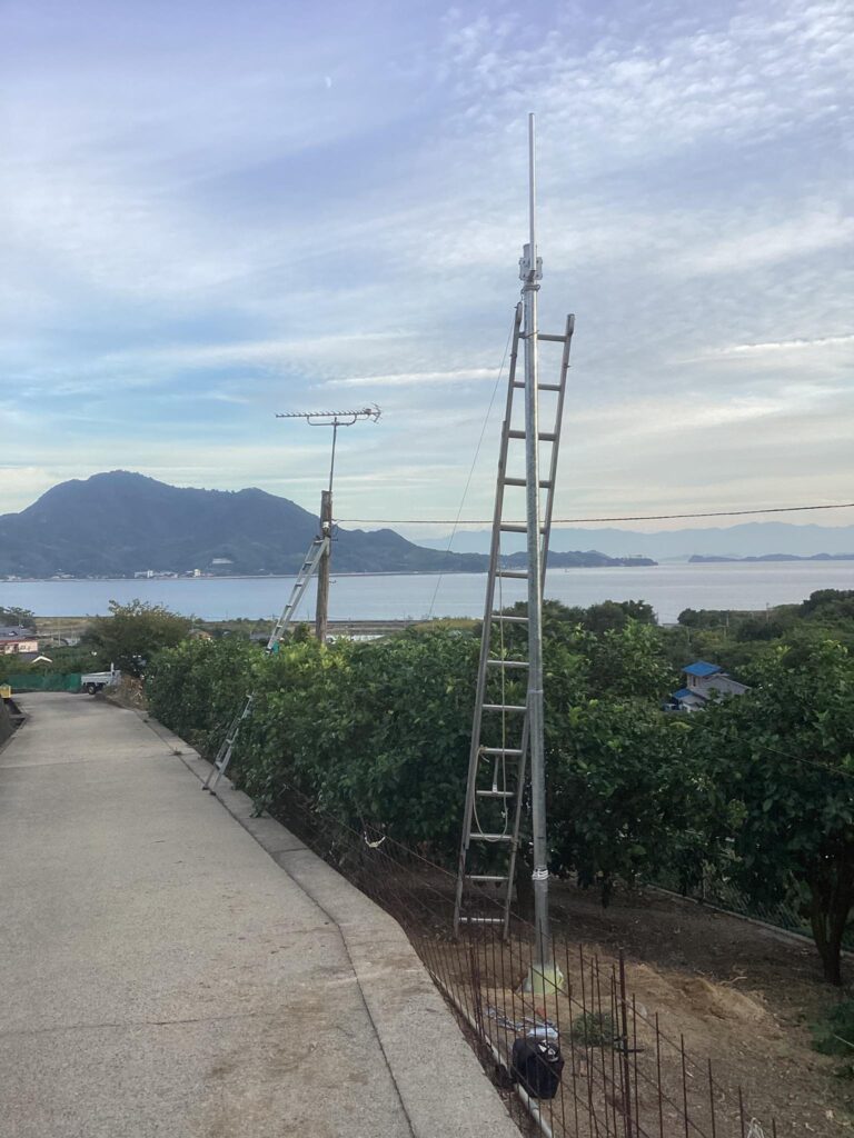 生口島 瀬戸田町御寺 K様邸。アンテナマスト改修工事完了。📡🏡💛 仕事 X Facebook はてブ LINE Pinterest コピー 2025.11.12レモン畑に立っている古い柱🍋レモンに傷が入らない様にこま切れにして撤去します。🌿🔧✨「アンテナマスト改修工事」。📡🏡💛