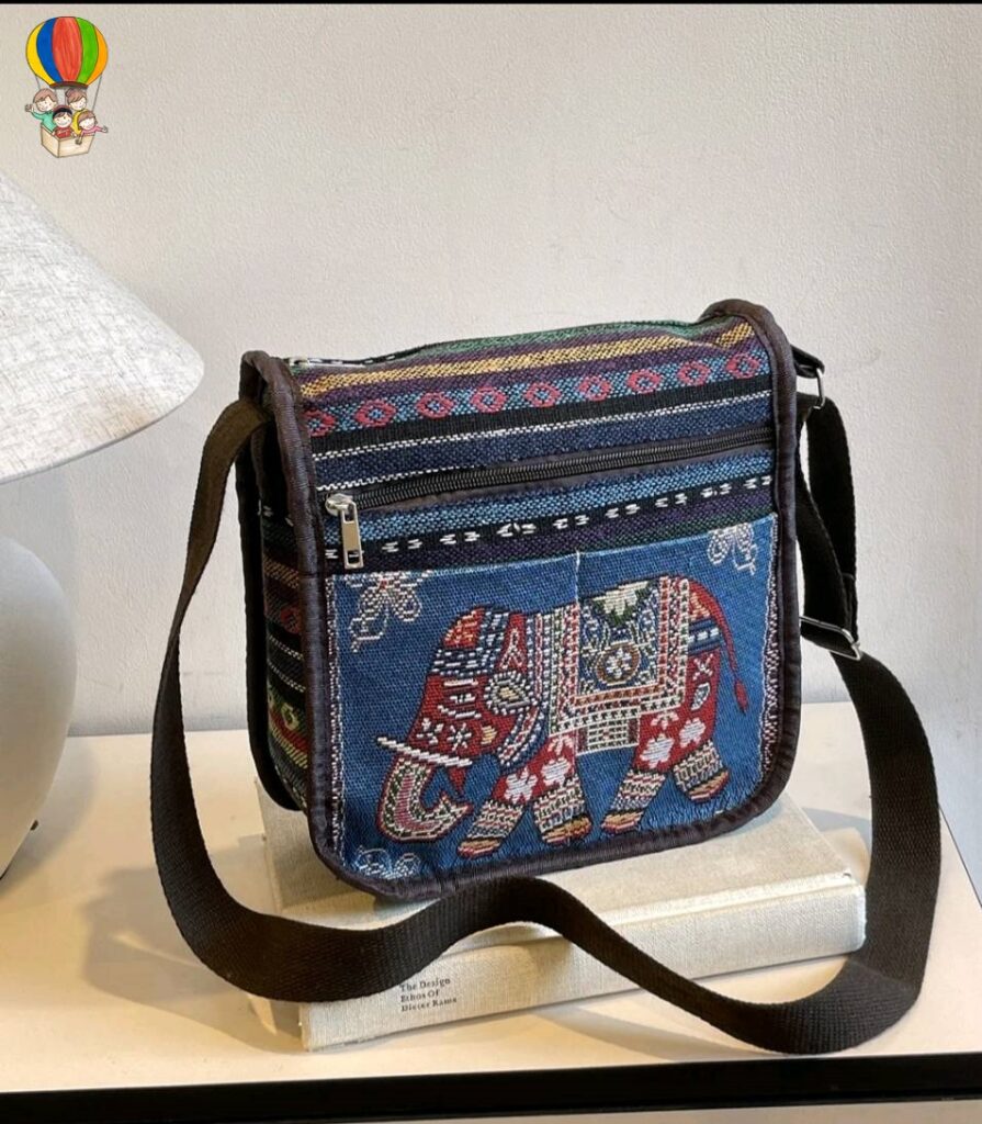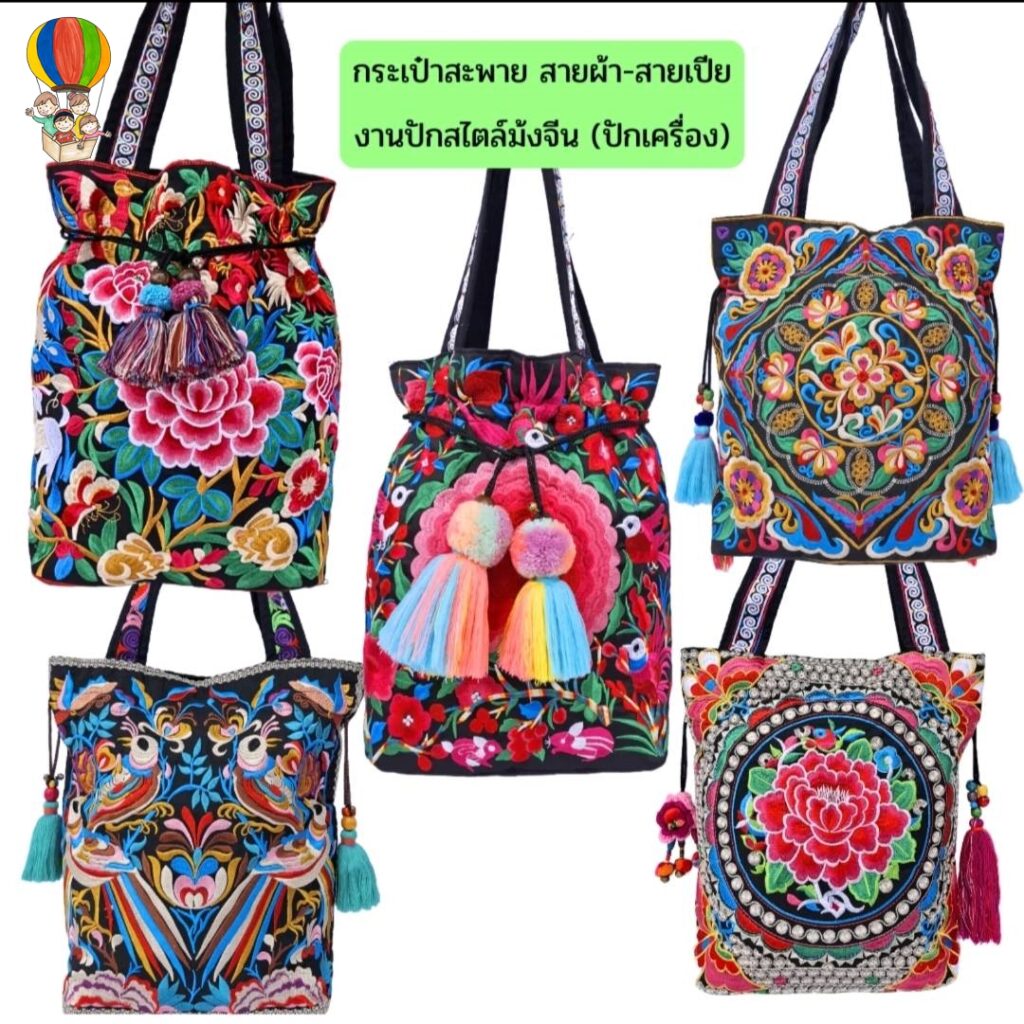微笑みの国・タイ王国、モン族の手の込んだ刺繍、美しい色合いの、ショルダーバッグ。