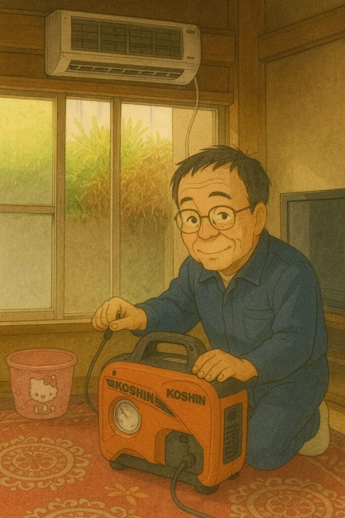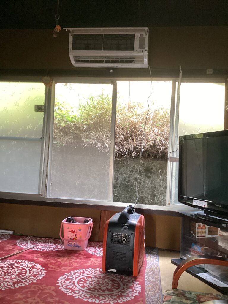 【エアコン取外し工事】電気が切られているので発電機でポンプダウンします。🔌✨