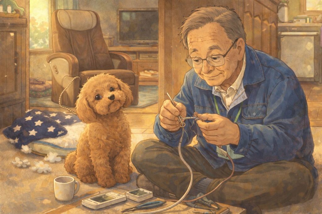 愛犬ピノンちゃん も設置をじーっと見守り👀