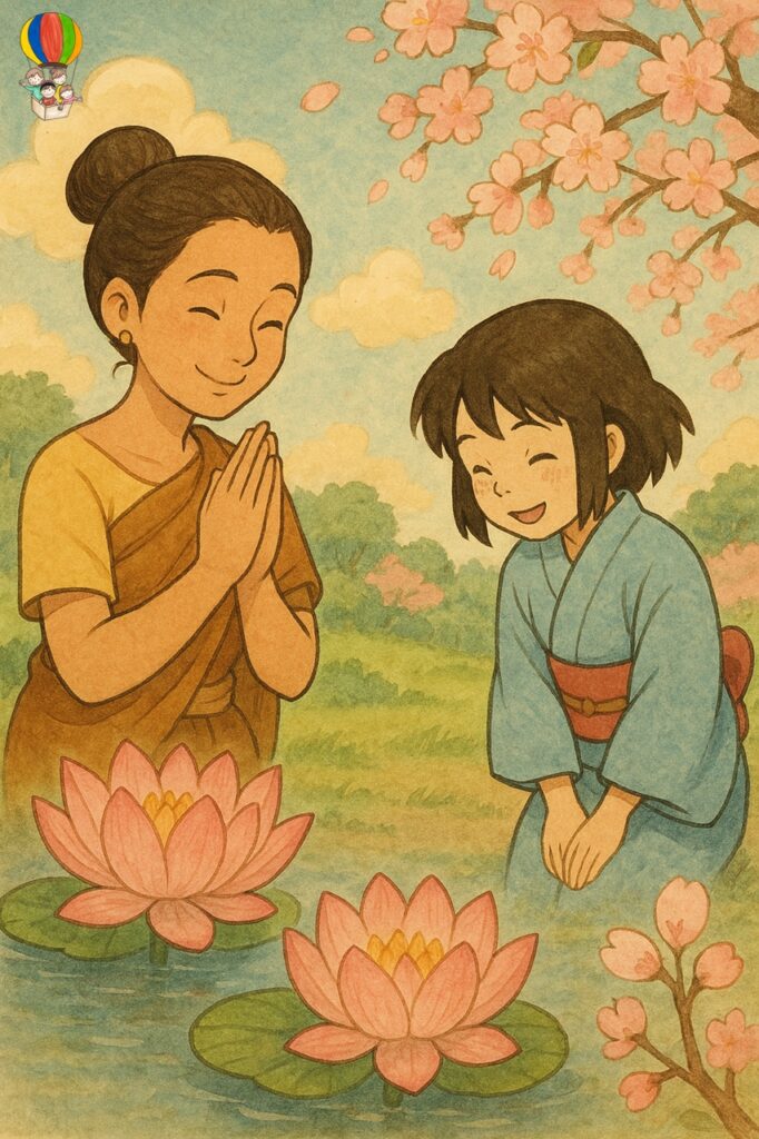 タイの心と日本の心が、朝の光の中で、蓮の花と桜の花が並んで咲くように出会うその瞬間を感じてみてください。🌷✨