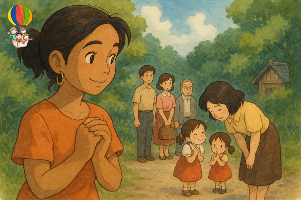 a gentle smile, a soft laugh, a respectful wai, or a graceful bow filled with sincerity.