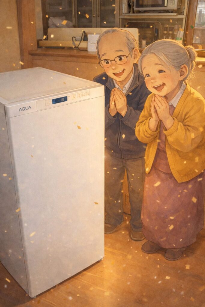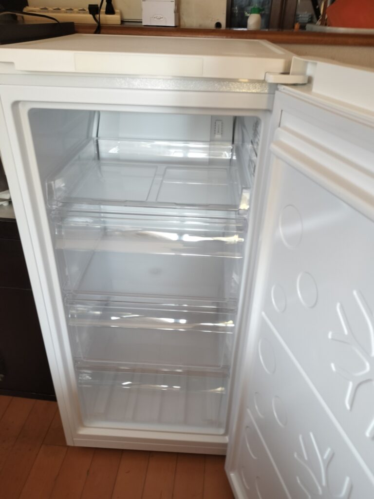 新しい冷凍庫を前に、