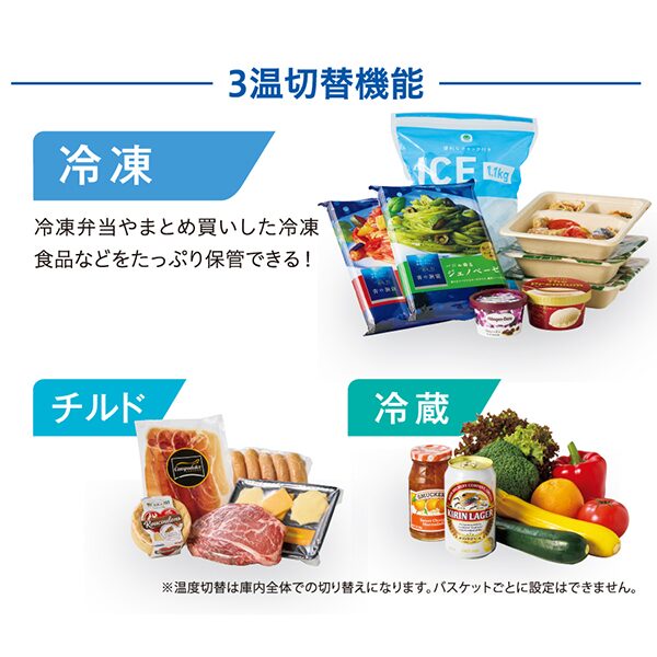 「冷蔵」「チルド」「冷凍」3温切替できる