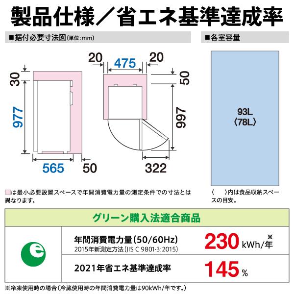 - 年間消費電力量:230kWh/年
