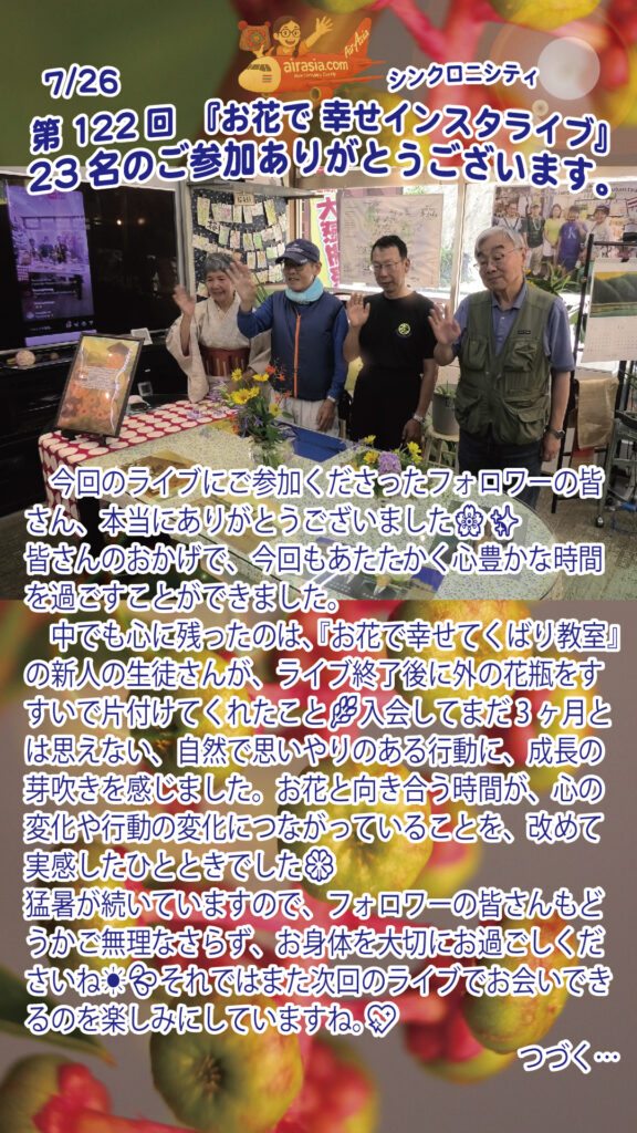 - 第76回 『お花で幸せ インスタグラムライブFlowers and Happiness Instagram Live』2023年 7月22日