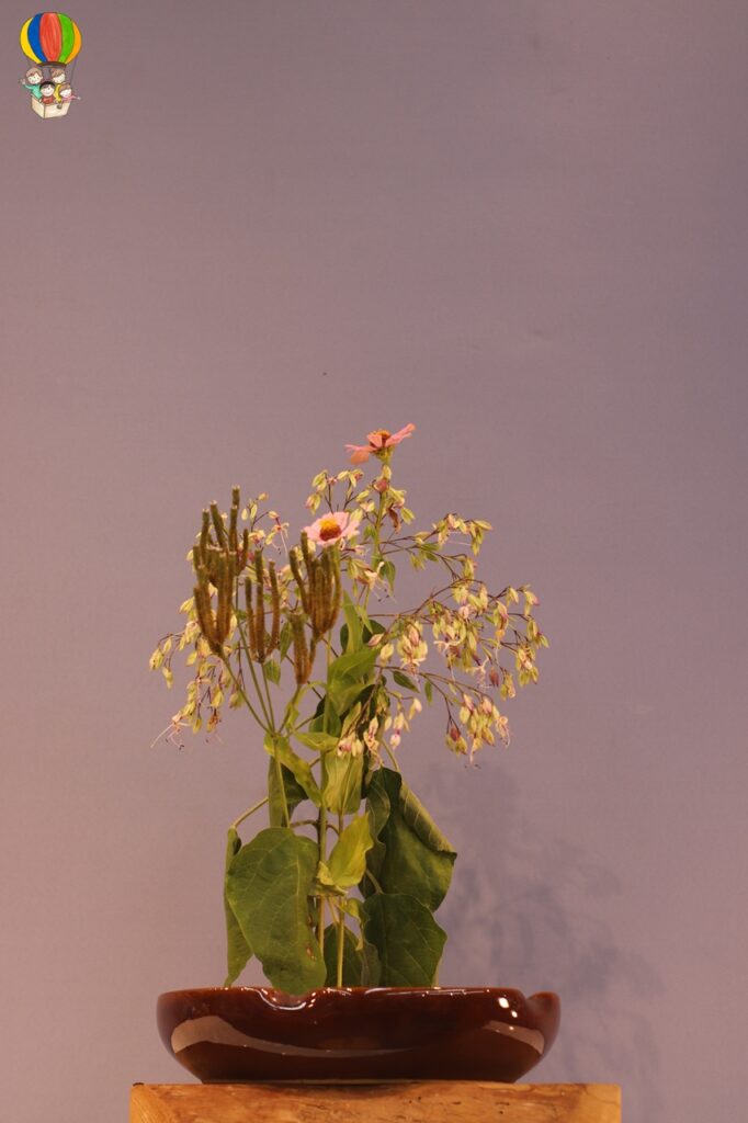 Великолепно составленная Экибана! Как низко наклонены веточки над малиновыми цветами! Нежны лепестки клевера! Надо обладать тонкой душевной организацией, чтобы с нескольких цветков и веток сотворить такую красоту!…❤️❤️❤️🔥🔥🔥