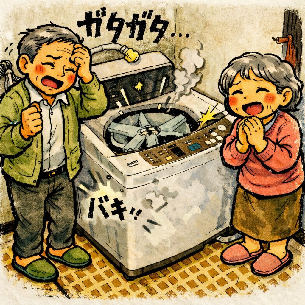 「洗濯してたら、急にもの凄い音がして…エラーで止まって、そのあと動かんのんよ…」😣💧
