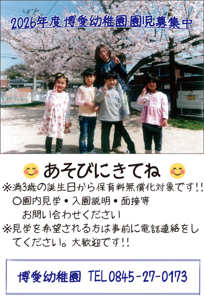 2026年度 博愛幼稚園 園児募集中