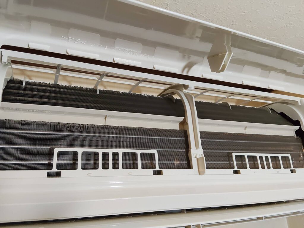 熱交換器にホコリが溜まってしまうと、吸い込みに負荷がかかるので、エアコンの効き具合が悪くなったりします。🥶💦