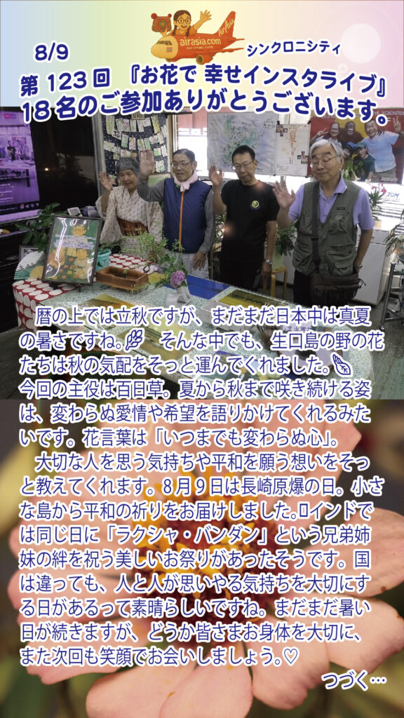 77. 第77回 『お花で幸せ インスタグラムライブFlowers and Happiness Instagram Live』2023年 8月12日