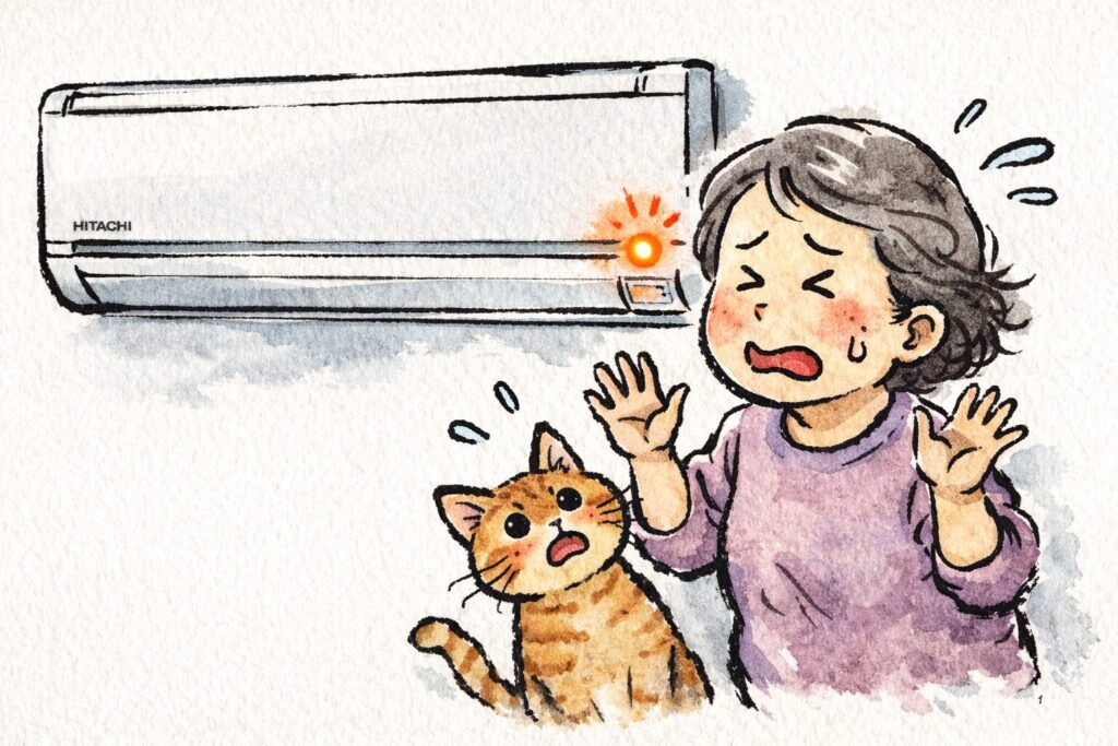 タイマーランプの点滅は、エアコンが「異常を検知していますよ」というサインのことが多いです。🔍