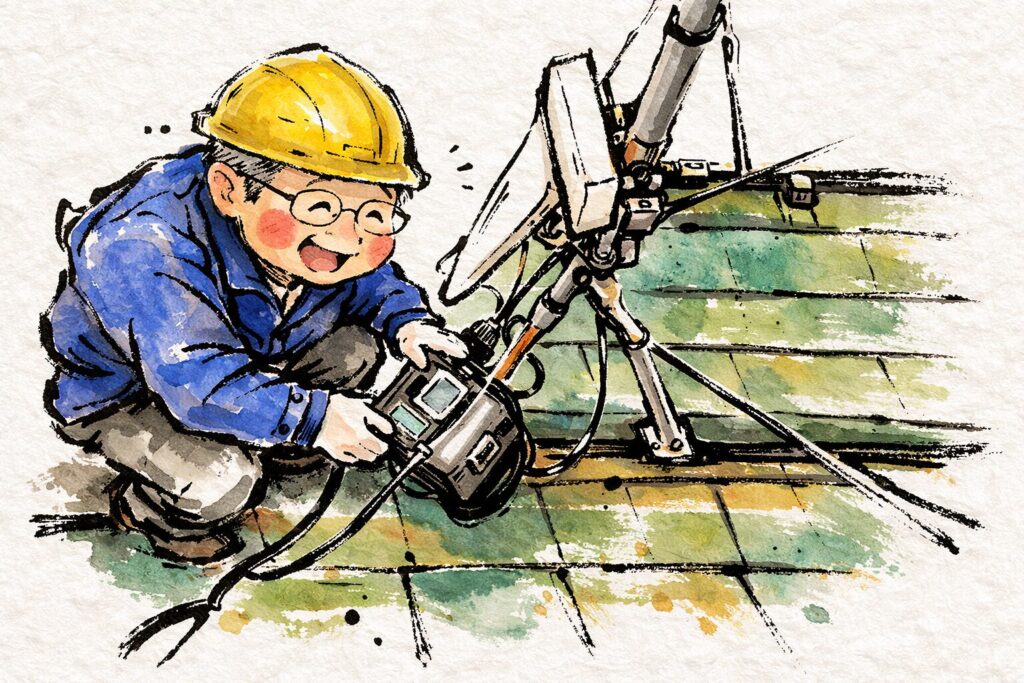 地デジ受信困ったコール📞 べんりMAN X Facebook はてブ LINE Pinterest コピー 2026.02.102026.02.28地デジ受信困ったコール📞ソラーに足が掛かって安心だが降りる時は気をつけよう😅