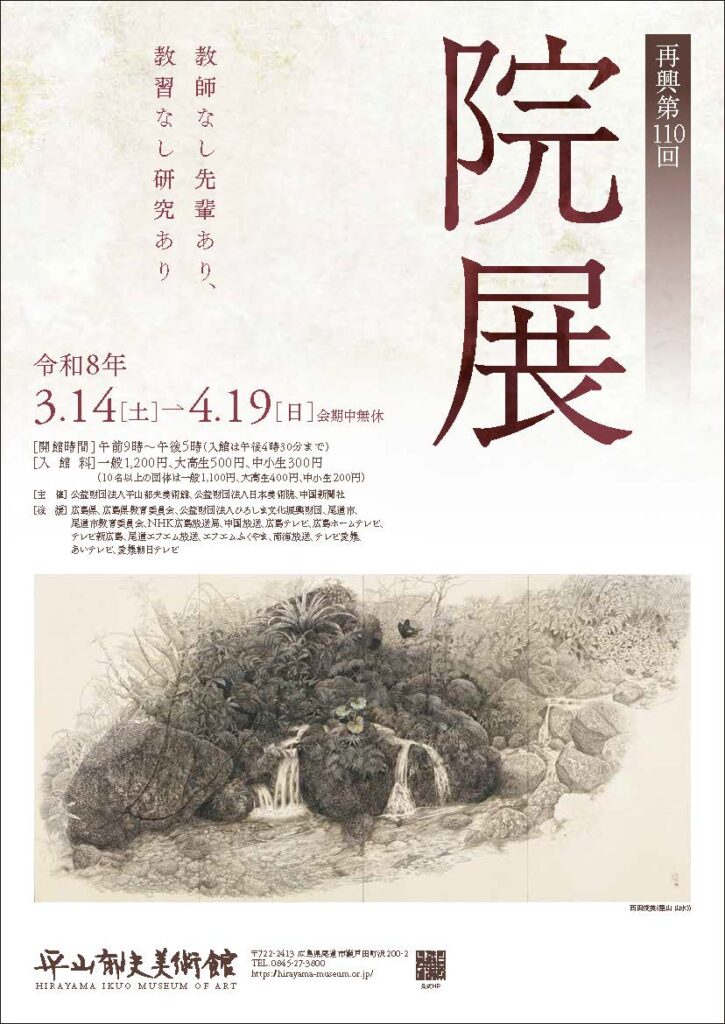 再興院展は日本美術院による 国内最大級の日本画公募展で、今回が110回目の開催となります。その記念すべき再興院展が全国を巡回するうちのひとつとなる本展では、同人作家の作品と各賞受賞作品に加え、入選作品より広島に縁のある作家の作品を展覧し、日本画壇の潮流を紹介します。