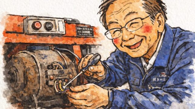 こちらの先代のお父さんは機械をつつくのがお好きで、選果機に年代物のモーターを搭載して長年使用されていたのですが、起動が弱くて初っぱな回りきらなかったため、スタート時だけ起動コンデンサーを追加してみました。🔧😊⚙️